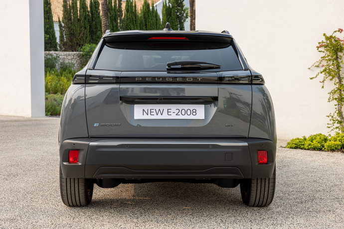 mid Malaga - Der Peugeot e-2008 wirkt dank der schmalen nach außen versetzen LED Rückleuchten recht bullig. Mike Neumann / mid