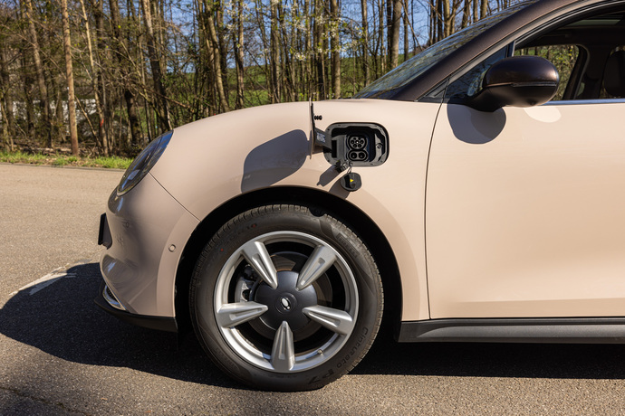 mid Groß-Gerau - Der Ladeanschluss befindet sich vorn links, die DC Ladeleistung beträgt 67 kW. Mike Neumann / mid