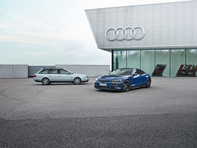 mid Groß-Gerau - Modelle v.l.n.r. (Standaufnahme): Audi S6 plus, Audi RS e-tron GT, Farbe: Ascariblau. Audi AG