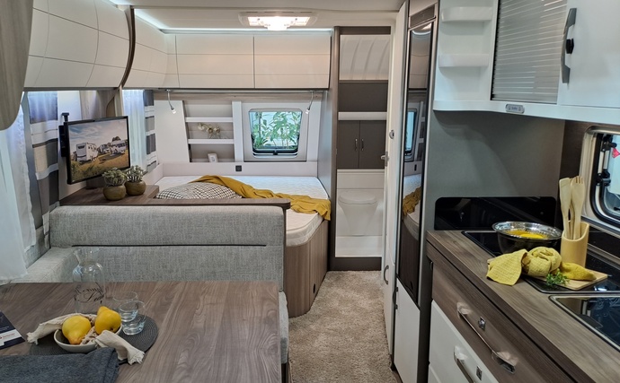 mid Düsseldorf - Über der Rundsitzgruppe im De Luxe 515 UHK gibt es optional ein Hubbett. Karl Seiler / mid