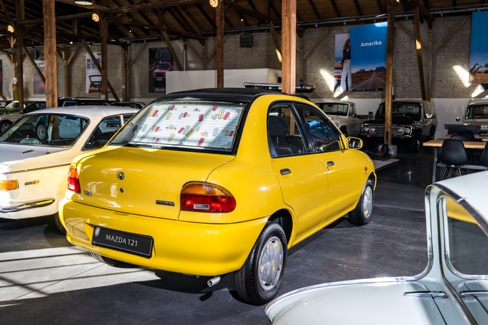 mid Groß-Gerau - Der Mazda 121 "Goldy" im leuchtenden Goldgelb der Haribo-Goldbären lackiert. Mazda