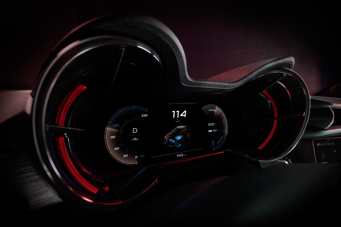 mid Mailand - Das Instrumentenboard im "Cannocchiale"-Design zitiert historische Alfa Romeo, weist aber modernste Technik auf. In der Mitte des Kombiinstruments liefert ein 10,25-Zoll-TFT-Bildschirm Informationen zu den wichtigsten Fahr- und Fahrzeugdaten. Alfa Romeo / Stellantis
