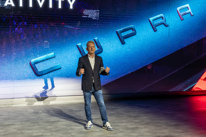 mid Madrid - Cupra CEO Wayne Griffiths in seinem Element kurz vor Enthüllung des neuen Cupra Formentor und Cupra Leon. Mike Neumann / mid