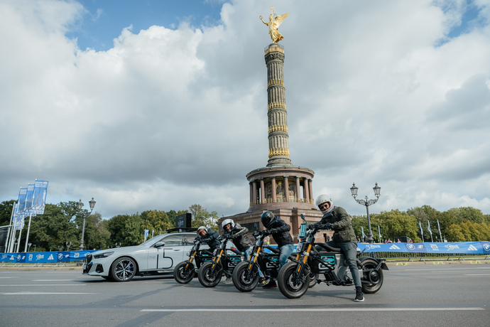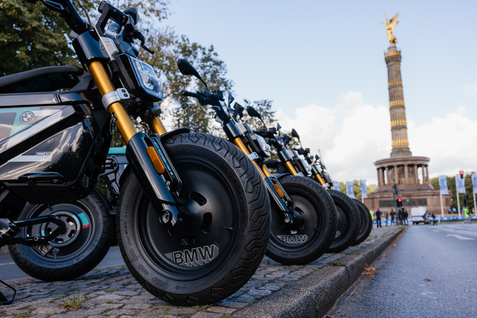 Die BMW Motorrad Welt in Berlin-Spandau feiert einjährigen Geburtstag. Der Berlin Marathon feiert den fünfzigsten Geburtstag. Was liegt da näher, als das gemeinsame Feiern und zudem die Marathon-Strecke mit BMW CE 02 Elektro-Rollern abzufahren.