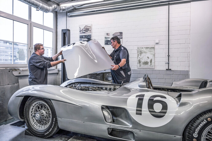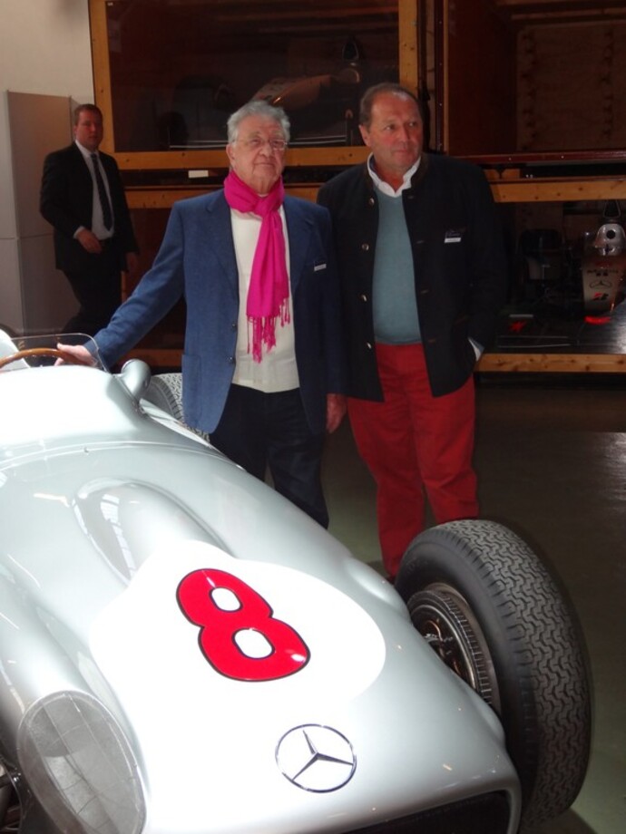 Hans Hermann (rechts) und Jochen Mass am Mercedes-Benz W196 R von 1955. Photo: Auto-Medienportal.Net