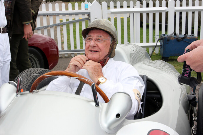 Stirling Moss 2015 in Goodwood im Mercedes-Benz 196 R, 1955. Photo: Auto-Medienportal.Net