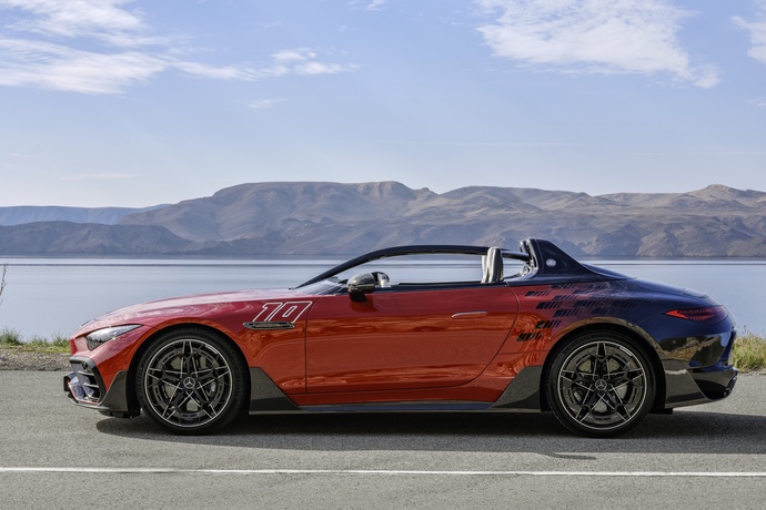 Die auf 250 Exemplare limitierte Oben-ohne-Version zeichnet sich unter anderem durch eine auffällige Zweifarblackierung aus Foto: Mercedes-Benz