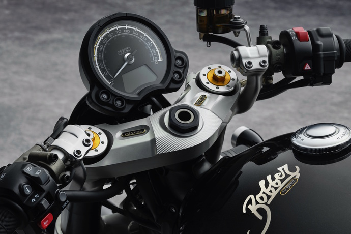 Die obere Gabelbrücke trägt eine kleine Plakette mit der Nummerierung des jeweiligen Exemplars der limitierten Kleinserie Foto: Triumph