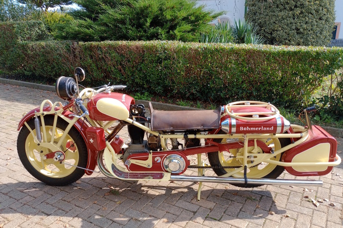 Sammler haben die Möglichkeit, ein seltenes und spezielles Stück Technikgeschichte zu ersteigern: Eine Böhmerland L3E steht zum Verkauf, die sich mit dem Titel „Längstes Serienmotorrad der Welt“ schmücken darf.