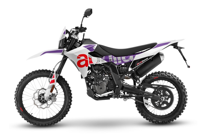 Bei der RX 125 setzt Aprilia auf eine stollenbewehrte Mischbereifung und Wave-Scheibenbremsen Foto: Aprilia