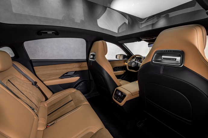 In der Heckklappe des Mazda 6e ist ein ausfahrbarer Spoiler integriert Foto: Mazda
