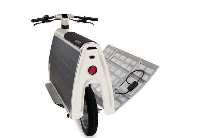 Solar-Moped? Das klingt irgendwie nach Zukunft. In den USA kann man jetzt ein solches Gefährt kaufen. Einen kleinen Aktionsradius vorausgesetzt, kann es allein mit Sonnenlicht betrieben werden.