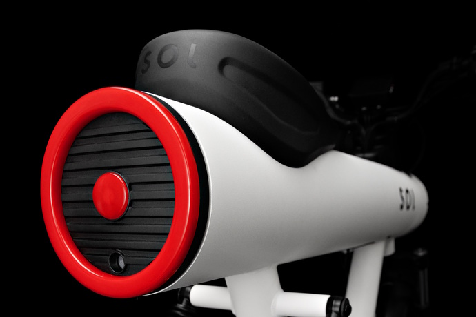Im großen Oberrohr stecken neben der Batterie außerdem die Front- und Heckleuchte Foto: Sol Motors