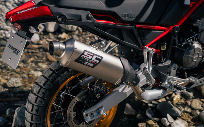 Dank der Auspuffanlage von SC Project soll die Rally fünf Kilogramm weniger als die normale Tuareg wiegen Foto: Aprilia