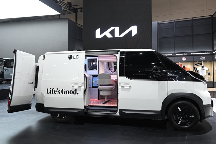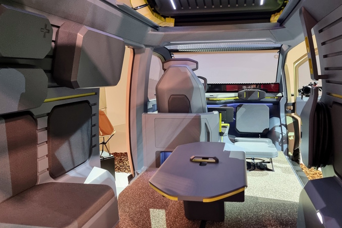 Auch ein vielseitig für Gewerbetreibende nutzbarer Ausbau des seriennahen PV5 haben die Koreaner im Mailand-Gepäck dabei Foto: Kia