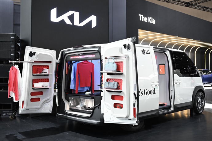 Der PV5 als mobiler Showroom für Designermode Foto: Kia