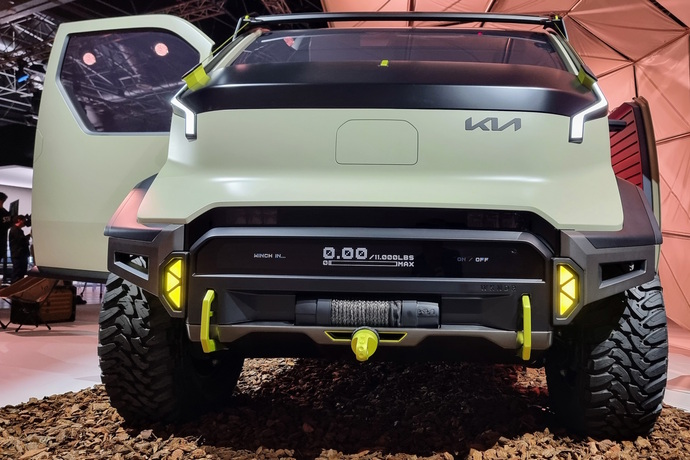 Kia PV5 WKNDR mit Winsch und Belastungsdisplay an der Front Foto: SP-X/Peter Weißenberg
