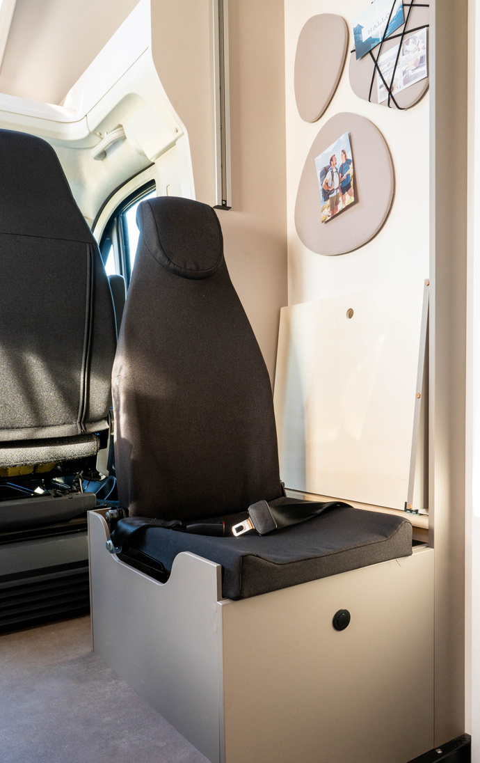 Optional gibt es einen zusätzlichen Einzelsitz. Er ist Gurt-gesichert, man sitzt dann allerdings entgegen der Fahrtrichtung Foto: LMC