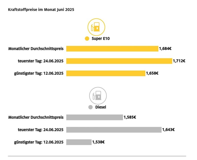 Die Kraftstoffpreise im Juni 2025. Photo: ADAC via Autoren-Union Mobilität