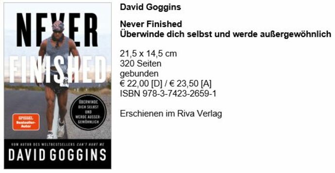 „Never Finished“ gibt einem definitiv einen neuen Blickwinkel auf das Leben mit all seinen Herausforderungen und wie man diese nicht nur übersteht, sondern meistert. Es ist schwierig das Buch lange am Stück zu lesen, aber nicht weil es nicht fesselnd genug wäre, sondern weil man nach fast jedem Kapitel am liebsten selbst sofort anfangen möchte zu trainieren und an sich zu arbeiten.