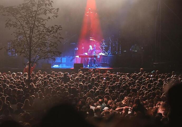 Auch die Rappering Wa22ermann aus Kreuzberg stand im Vorprogramm auf der Bühne und hatte dabei demonstrativ einen "Free Palestine"-Schal um. Bereits über eine Stunde bevor Peter Fox anfing, zu singen, musste das Gelände wegen Überfüllung gesperrt werden.