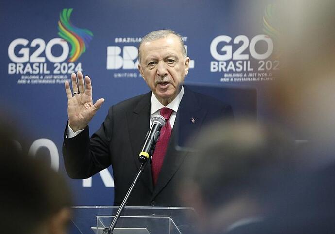 Rio de Janeiro (dts Nachrichtenagentur) - Am Rande des G20-Gipfels in Rio de Janeiro hat der türkische Präsident Recep Tayyip Erdogan Israels Vorgehen im Gazastreifen als "Verbrechen gegen die Menschlichkeit" bezeichnet.