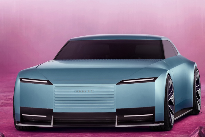 Ebenso provokant ist die Formensprache des Type 00, mit der monolithisch wirkenden Front, streng geometrische Flächen, schlitzartigen Leuchteinheiten und einer extrem glatten Außenhaut ohne Antenne, Außenspiegel oder Türgriffe. Außerdem steht das Auto auf 23-Zoll-Felgen, die in kraftvoll ausgestellten Radhäusern stecken. Eine Heckscheibe gibt es nicht. Dafür aber ein großes Panorama-Glasdach. Erstaunlich sind auch die Proportionen des Zweitürers, der wie die Luxusautos der Vergangenheit eine sehr lange Front mit einem weit nach hinten gerückten Greenhouse kombiniert, das erst hinter der Hinterachse endet. Diese Proportionen dürften auch der Versuch sein, eine Brücke zum legendären E-Type zu schlagen, wenngleich das Design insgesamt für einen radikalen Bruch mit der Vergangenheit von Jaguar steht.