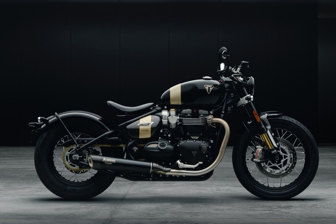 Zu Preisen ab rund 19.800 Euro bietet Triumph seine Bonneville Bobber ab sofort als Sondermodell TFC an. FC steht für die hauseigene Veredelungsabteilung Factory Custom, die die auf 750 Exemplare limitierte Sonderserie mit Goldakzenten, Öhlins-Fahrwerk, Ledersitz, Anbauteilen aus Carbon und Akrapovic-Auspuffendrohren aufgewertet hat. Weitere Details sind ein sportlicherer Stummellenker, der dem Sondermodell vorbehaltene Fahrmodus „Sport“ sowie ein speziell gestalteter Zündschlüssel.
