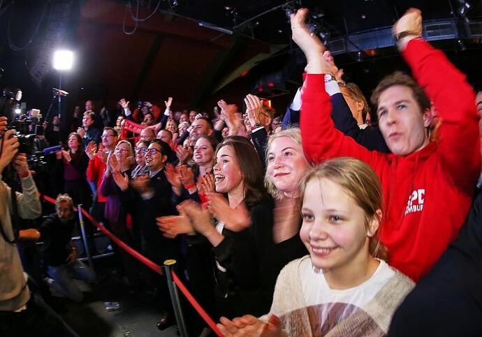 SPD-Anhänger reagieren auf die 18-Uhr-Prognose zur Hamburger Wahl am 02.03.2025, via dts Nachrichtenagentur
