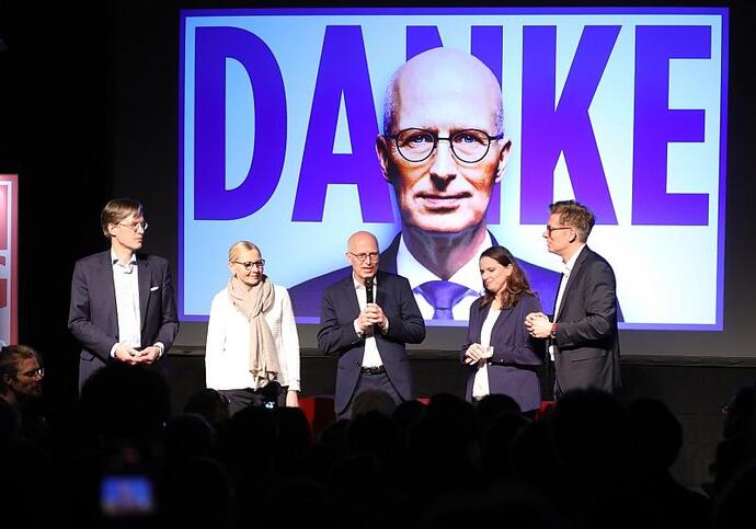 Die Lage sei angesichts der vorgezogenen Bundestagswahl vor einer Woche "knifflig" gewesen, sagte Tschentscher am Sonntagabend auf der SPD-Wahlparty. "Wir haben es hinbekommen", fügte er hinzu. "Wir sollten uns daran erinnern, dass wir als SPD in Deutschland Wahlen gewinnen können." Zudem zeigte er sich über das im bundesweiten Vergleich eher schwache Abschneiden der AfD erfreut. "Es ist eine großartige Botschaft, dass uns die Schlechtgelaunten aus der rechten Ecke vom Hals gehalten wurden in Hamburg."