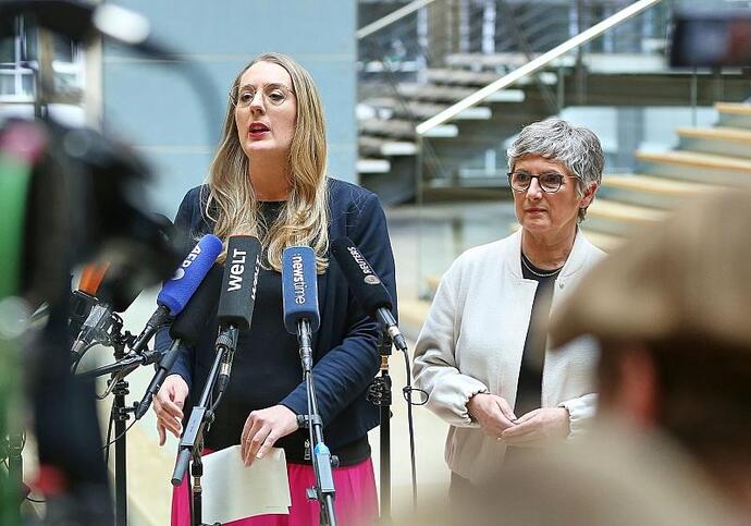 Im Hinblick auf die künftige Oppositionsrolle der Grünen erklärte sie, dass man nun in der Verfassung verankert habe, dass das Sondervermögen Investitionen mit dem Ziel der "Erreichung der Klimaneutralität 2045 dienen soll".