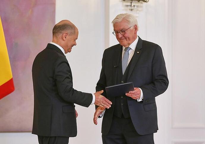 Es gehöre aber zur Geschichte der Koalition, dass das Bündnis vor der Zeit zerbrochen sei. "Die unterschiedlichen Auffassungen, wie beides vereinbar ist, die Schuldengrenze zu wahren und gleichzeitig angemessen auf die Krisen zu reagieren, sie haben am Ende zu unüberbrückbaren Differenzen in Ihrer Regierung geführt." Für die kommenden Jahre liege es nicht allein bei der neuen Regierungsmehrheit, sondern in der Verantwortung aller Fraktionen im Bundestag, respektvoll und konstruktiv miteinander zu streiten und Lösungen zu finden, die allen Menschen im Land dienen. "Darum muss es jetzt gehen", so das Staatsoberhaupt.