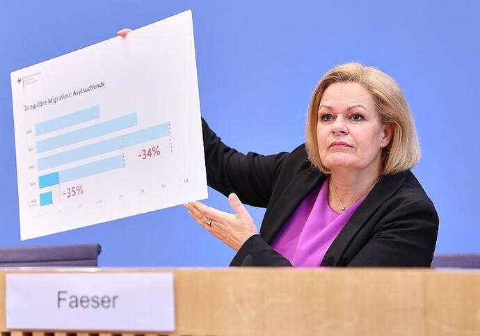 Berlin (dts Nachrichtenagentur) - Bundesinnenministerin Nancy Faeser (SPD) hat sich selbst eine positive Bilanz in der Migrationspolitik bescheinigt.