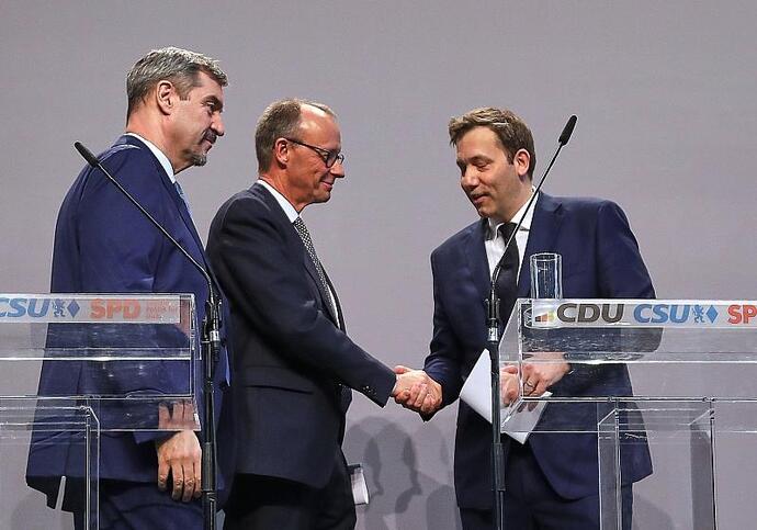 Bei der Schwesterpartei CDU soll satzungsgemäß ein Kleiner Parteitag über die geplante Koalition entscheiden. Als Termin steht dabei der 28. April im Raum. Die SPD beginnt am kommenden Dienstag eine Befragung der gut 358.000 Mitglieder. Das Abstimmungsverfahren dauert zwei Wochen und endet mit Ablauf des 29. April. Anfang Mai soll dann CDU-Chef Friedrich Merz zum Kanzler gewählt werden.