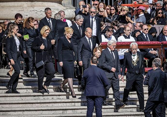 Während der Trauerfeier saß Scholz in der dritten Reihe neben dem britischen Thronfolger, Prinz William. Der voraussichtlich künftige Kanzler Friedrich Merz reiste nicht nach Rom.