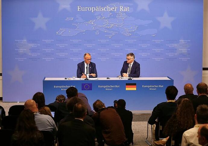 In der Handelspolitik und insbesondere im Zollstreit mit den USA hatte er sich im Rat wie angekündigt für zügige Verhandlungen eingesetzt. Man müsse hier zu einer schnelleren Übereinkunft kommen, auch 20 Jahre Verhandlung für das Mercosur-Abkommen seien viel zu lang. Überrascht zeigte sich der Kanzler davon, dass die EU-Kommission den Vorschlag einer "neuen Art von Handelsorganisation" gemacht habe, die die Welthandelsorganisation (WTO) ersetzen könne.