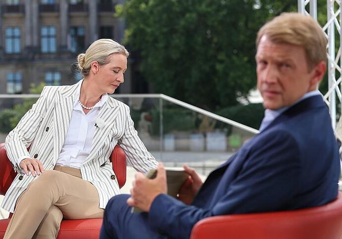 Auch um die Frage, ob die AfD sich "mäßigen" sollte, ging es. Weidel verneinte dies: "Wir haben ein Parteiprogramm, das die Freiheit der Bürger hochhält und die Bürgerrechte, und wir wollen wieder vernünftige Politik für unser Land machen."