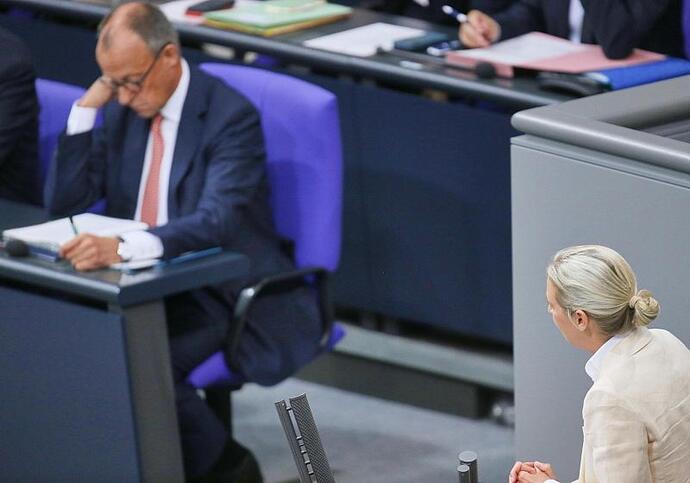Berlin (dts Nachrichtenagentur) - Die AfD bleibt laut einer aktuellen Forsa-Umfrage weiterhin ganz vorne bei den Parteipräferenzen und hält ihr Rekordniveau von 26 Prozent. Mit einem Prozentpunkt dahinter bleibt die CDU/CSU bei 25 Prozent, so das Ergebnis der Erhebung für das "RTL/ntv Trendbarometer", die am Dienstag veröffentlicht wurde.