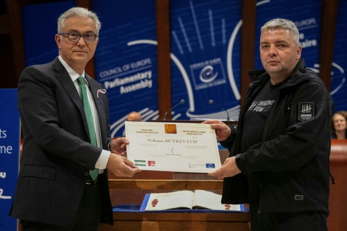 Butkewytsch, der erste Preisträger aus der Ukraine, ist Gründer eines unabhängigen Radiosenders und Mitgründer eines Zentrums für den Schutz der Freiheiten. Er hatte sich nach der russischen Invasion im Februar 2022 freiwillig zu den ukrainischen Streitkräften gemeldet und wurde wenige Monate später gefangen genommen. Im März 2023 wurde er zu 13 Jahren Haft verurteilt, dann aber im Oktober 2024 im Rahmen eines Gefangenenaustausches freigelassen.