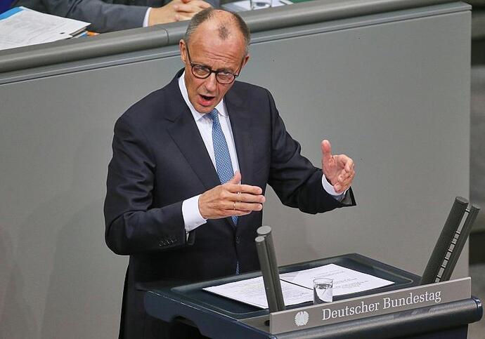 Die Generalaussprache zum Kanzleretat ist üblicherweise der Höhepunkt der Haushaltswoche. Dabei kommt es traditionell zum Schlagabtausch zwischen Regierung und Opposition. Üblicherweise geht es nicht nur um den Bundeshaushalt, sondern um die gesamte Bundespolitik. Als größte Oppositionsfraktion hatte die AfD am Mittwoch die Debatte begonnen. Merz war der erste Redner nach AfD-Chefin Alice Weidel. Diese hatte der Koalition attestiert, "im Endstadium" zu sein und "immer stärker an die Brücke der Titanic" zu erinnern. Merz habe die Kontrolle verloren: "Der Kapitän hat nichts mehr zu sagen und schaut einfach zu, weil der erste Offizier ihm die Kapitänsmütze geklaut hat", so Weidel.