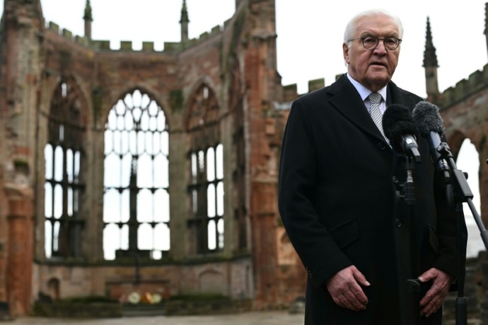 Im englischen Coventry hat Bundespräsident Frank-Walter Steinmeier der Opfer der deutschen Bombardierung im Zweiten Weltkrieg gedacht. In den Ruinen der bei einem NS-Luftangriff vor 85 Jahren zerstörten Kathedrale legte Steinmeier am Freitag einen Kranz nieder. Coventry war am 14. November 1940 bei stundenlangen Bombenangriffen der NS-Luftwaffe schwer zerstört worden. Mehr als 560 Menschen wurden dabei getötet und hunderte weitere verletzt. Auch die Kathedrale wurde weitgehend zerstört, heute stehen nur noch Mauerreste.