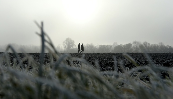 Für Sonntag erwartet der Deutsche Wetterdienst in der Mitte Deutschlands weiter "markante Glätte", Glättegefahr sei verbreitet. Nahezu im ganzen Land herrsche Frost und in der Nordwesthälfte gebe es gebietsweise auch Nebel.