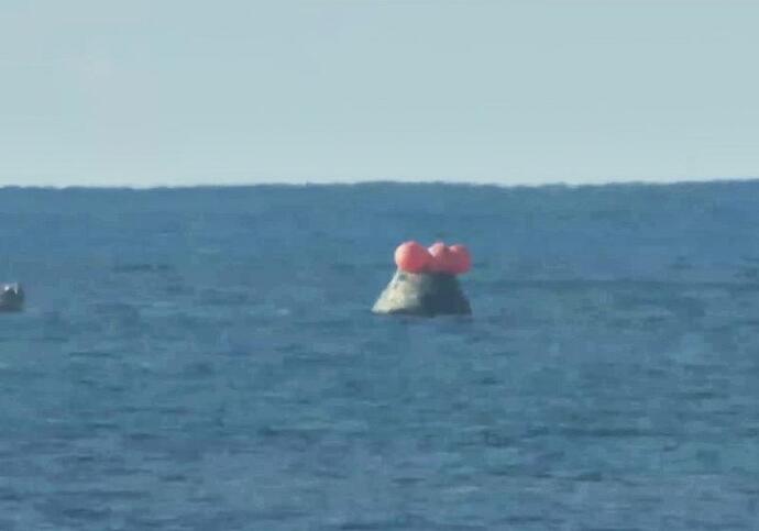Zuletzt wurde die Kapsel über ein System aus elf Fallschirmen von etwa 480 km/h auf 0 Meilen auf 30 km/h für die Wasserung abgebremst. Dem Vernehmen nach sind die vier Astronauten wohlauf.